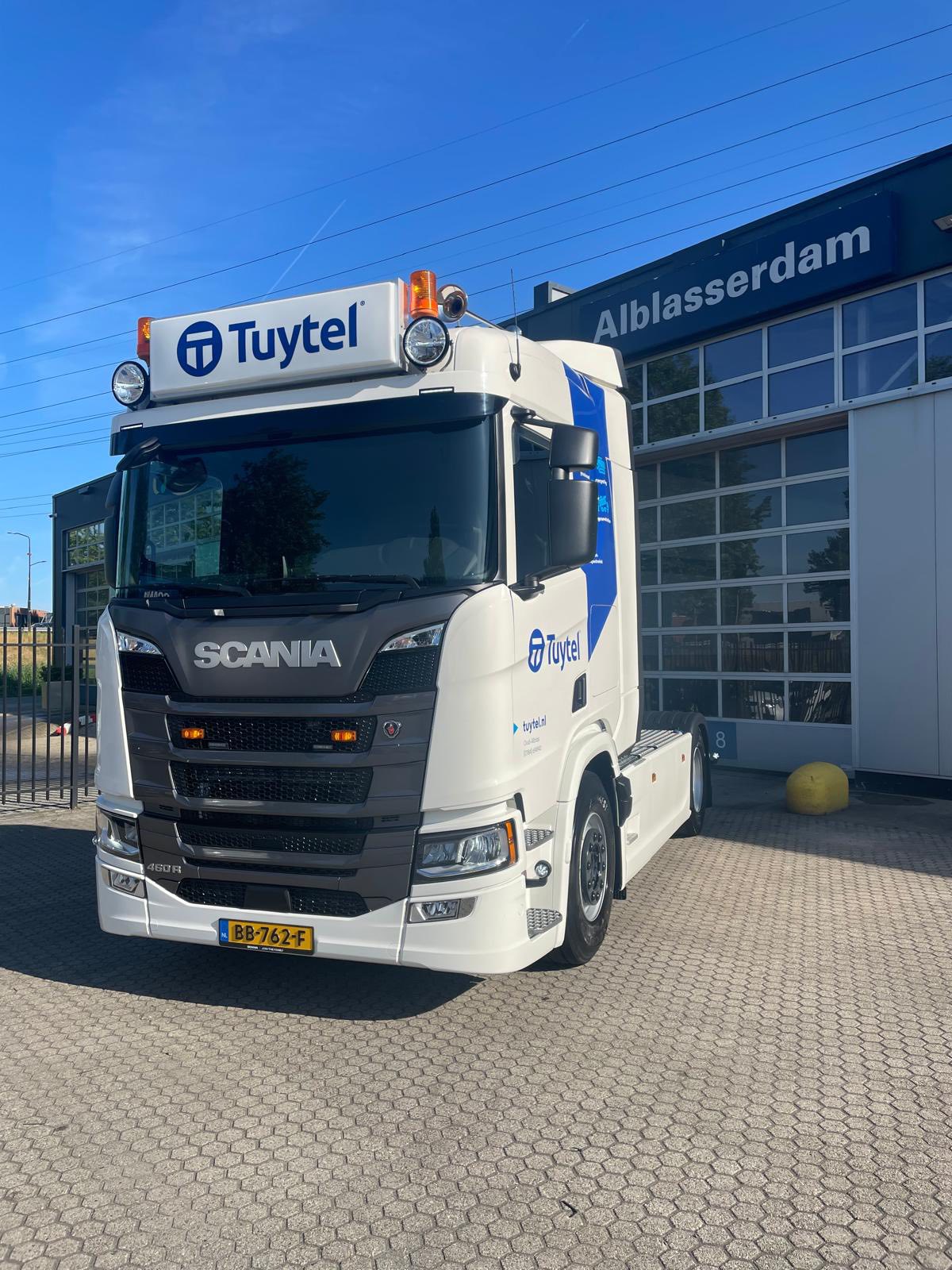 1x Scania 530R V8 – deze truck wordt ingezet voor onze dieplader en biedt maximale trekkracht, betrouwbaarheid en comfort.