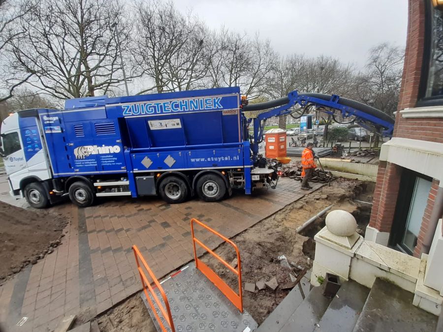 Graven zonder schade wordt steeds populairder. Met behulp van deze Longo zuigwagen gemonteerd op een Volvo chassis kunt u grond, zand of ander materiaal eenvoudig weg laten zuigen door een van onze ervaren machinisten. De zuigwagen is voorzien van 2 turbines die de zuigkracht regelen. Wanneer u bijvoorbeeld dakgrind wil wegzuigen, een kruipruimte wil leegzuigen of een nieuwe passagierstunnel wil aanleggen is deze zuigwagen een uitstekende keuze.