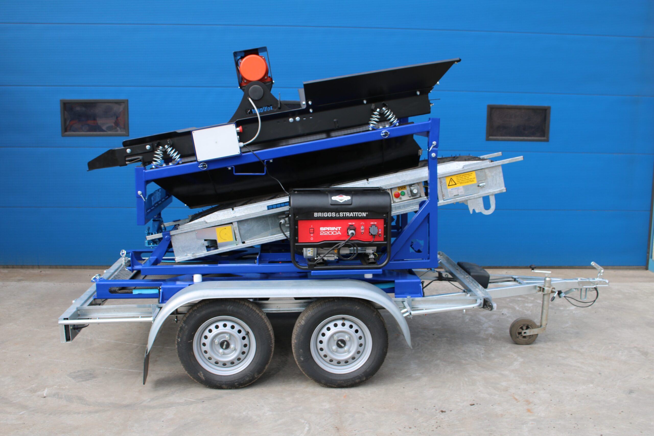 De zeef heeft een gewicht van 680kg, waardoor deze gemakkelijk kan worden vervoerd met een auto met trekhaak. Wij kunnen de zeef ook voor u op de juiste locatie zetten. De mini trailer zeef heeft een capaciteit van 10-20 ton per uur, afhankelijk van het materiaal dat wordt gezeefd.