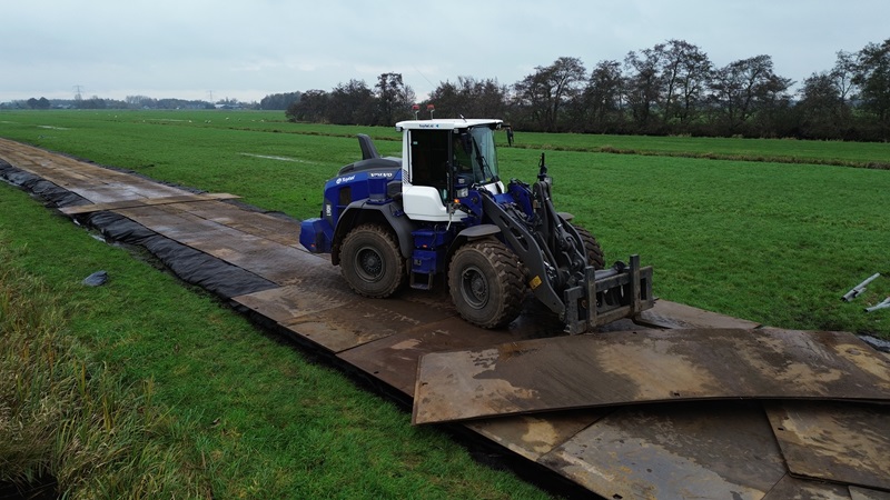 Deze krachtige shovel kan worden voorzien van palletvorken, dichte bak, puinriek, rippertand en schudbak en beschikt over een overdrukcabine en gps.