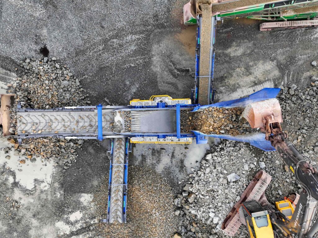 Voorzien van hydraulisch opvouwbare banden, lage invoerhopper en volledig track-onderstel – makkelijk te transporteren en op te zetten.
