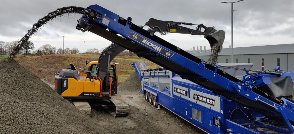 De EDGE TRM831 is een krachtige mobiele trommelzeef die ontworpen is voor het efficiënt scheiden van diverse materialen zoals compost, zand, bouw- en sloopafval.