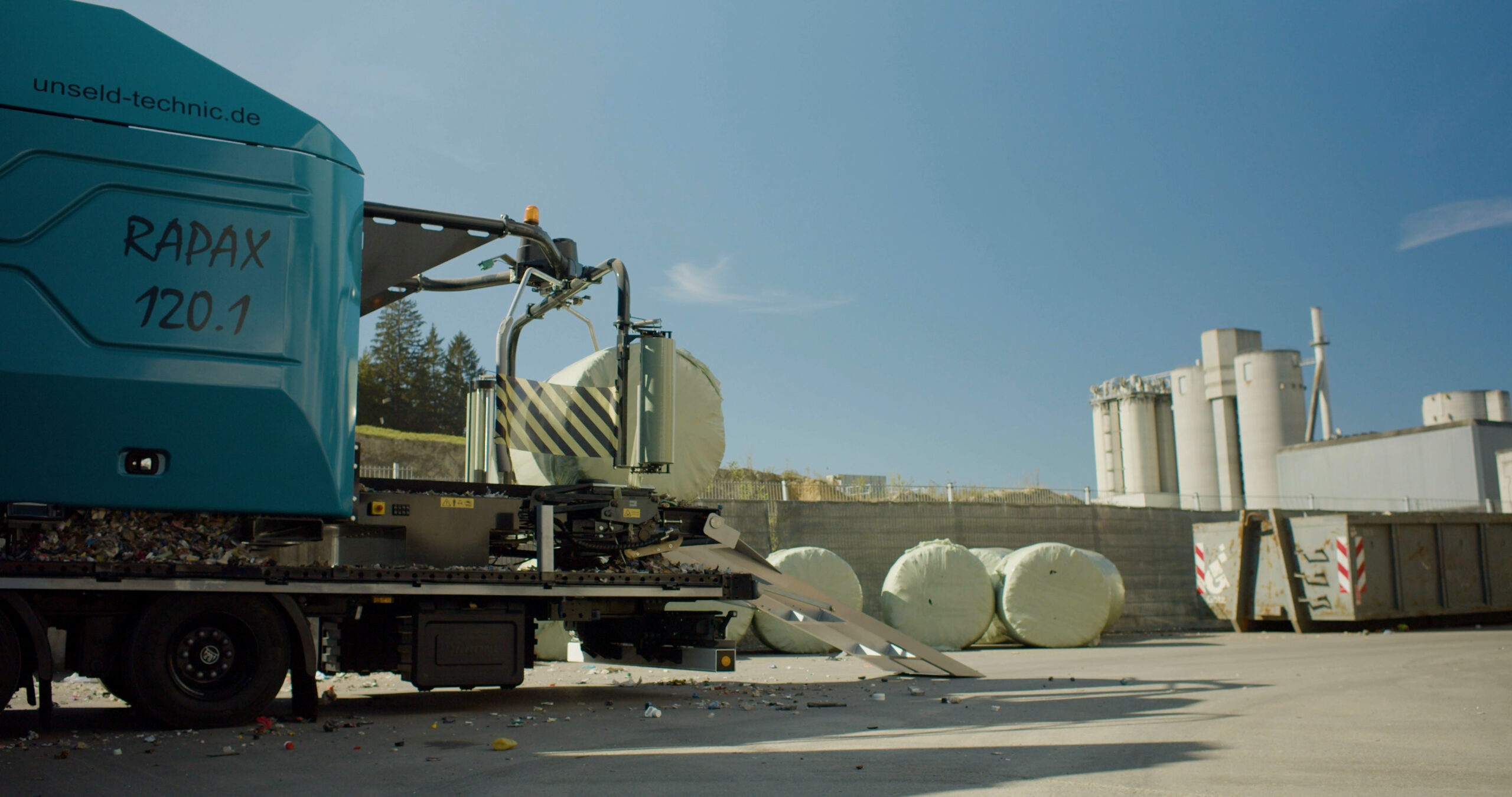 De Unseld Rapax 120.1 is een krachtige en veelzijdige balenpers voor het persen en luchtdicht verpakken van uiteenlopende materialen zoals huishoudelijk afval, folie, groenafval, schors, papier en zelfs substituutbrandstoffen (RDF/EBS). Dankzij het unieke rol-pers-systeem wordt het materiaal sterk verdicht (3:1 tot 5:1) en automatisch verpakt in ronde balen met rekfolie of net, klaar voor opslag of transport.